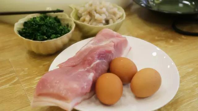 豬前腿肉、雞蛋、薺菜、蝦仁、餛飩皮