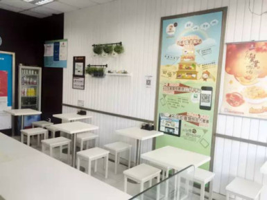 我門店真正的營業面積只有25個平方,所以一天做3500~5000的營業額我基本滿意。后來我就把店里的桌子和椅子用膠水固定,讓椅子無法被隨意搬動。因為凳子一亂店里人一多,就會導致本來狹小的店里看起來更加凌亂。我這么做,一是為了整潔,二是為了合理利用空間。有時候凳子并排放,四個人的座位就有可能變成兩個人的座位。這都是慢慢摸索出來的,剛開始的時候都是并排坐,現在錯開來坐就能六張桌子坐到12個位子。這邊12個位子,那邊12個位子,總共加起來24個位子。現在店里最高一天做了5538元,一般情況是3000多,一個位子的產量差不多是200多元。